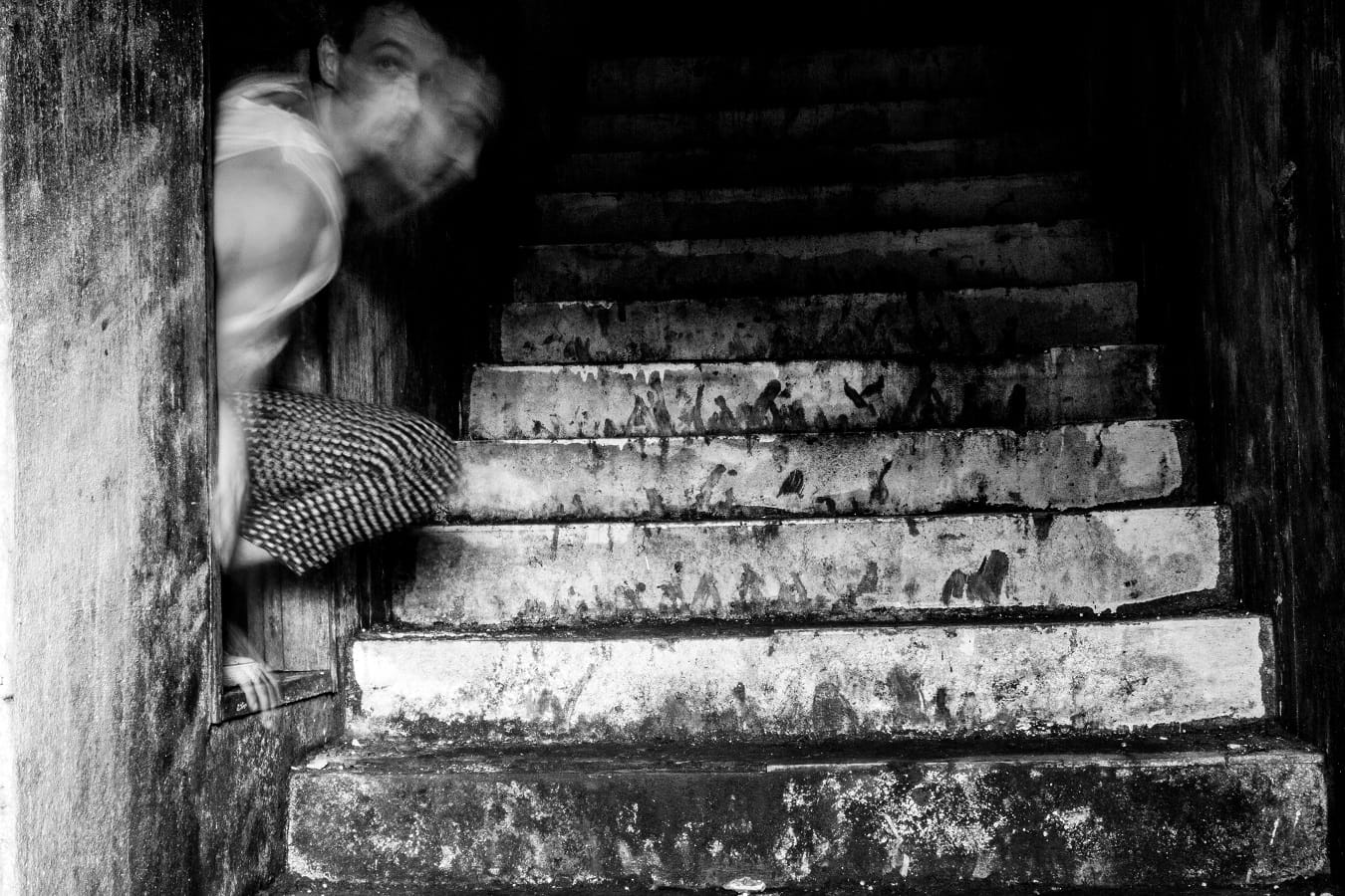 O fotógrafo porto-alegrense constrói narrativas visuais marcadas por tensão, ausência e transitoriedade. Em preto e branco, suas imagens intensificam contrastes e conduzem o olhar a zonas de ambiguidade. A presença humana surge como vestígio: corpos borrados e espectrais indicam a impermanência e a dissolução do sujeito no espaço.