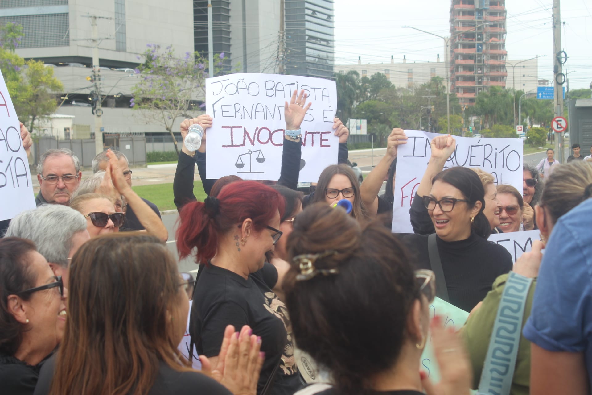 Amigos e familiares ficaram sabendo de encaminhamento de João Batista Fernandes à prisão domiciliar em meio ao protesto | Fotos: Pedro Pereira/Matinal